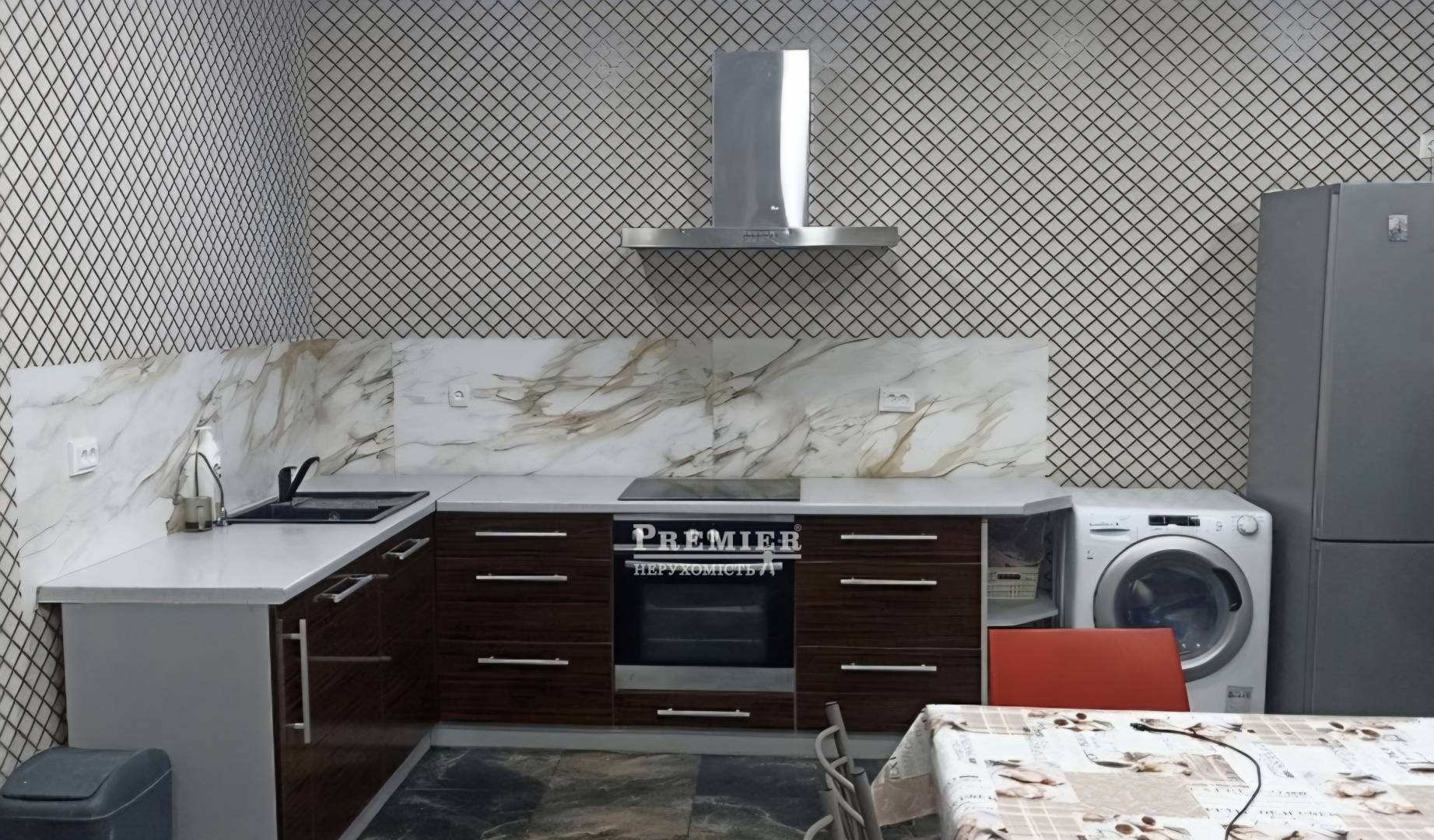 Будинок по першому поверху: кухня - 29 м2, три окремі кімнати по 18м2, вітальня 20м2, коридор, санвузол, і котельня - зроблений косметичний ремонт (звичайний житловий стан) з повною заміною комунікації (водопровід, каналізація, система опалення, електропроводка-380).