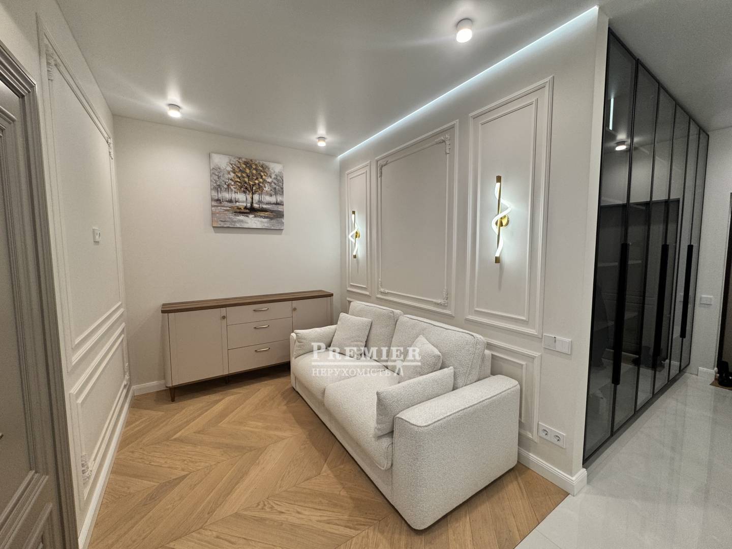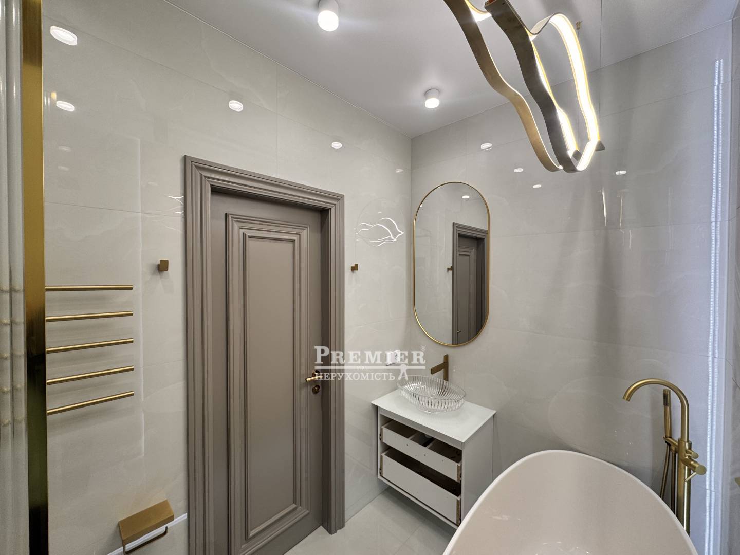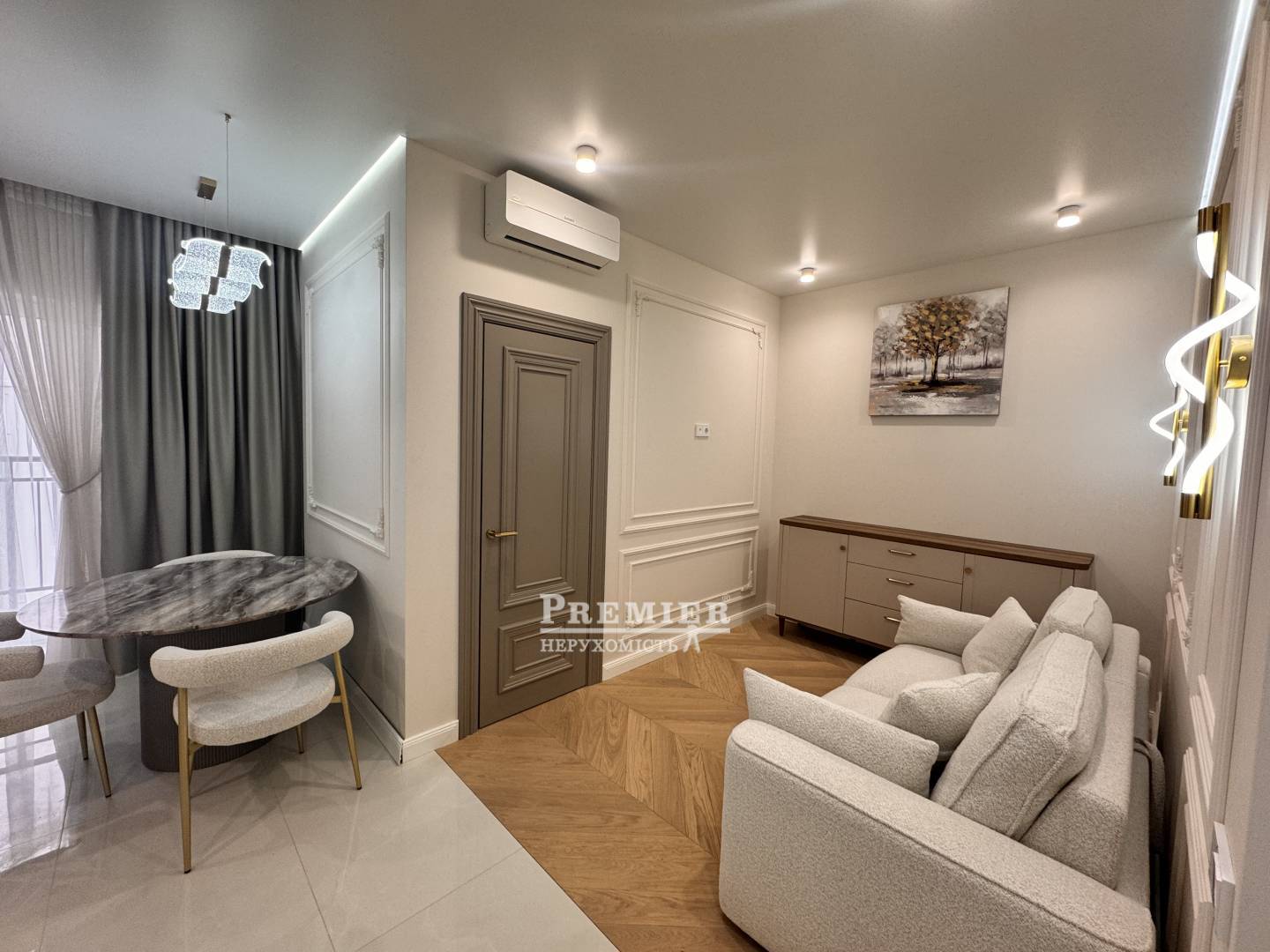 Матеріали преміумкласу, натуральна інженерна дошка під ногами, двері з масиву дерева та тепла підлога створюють особливий затишок.