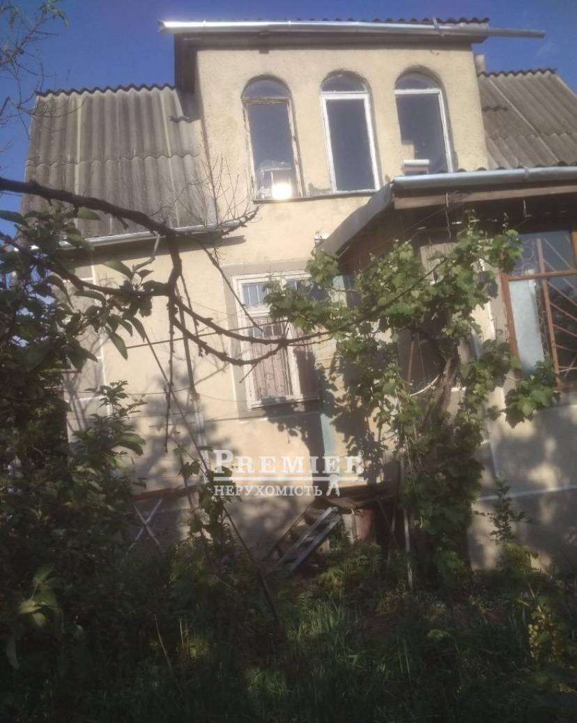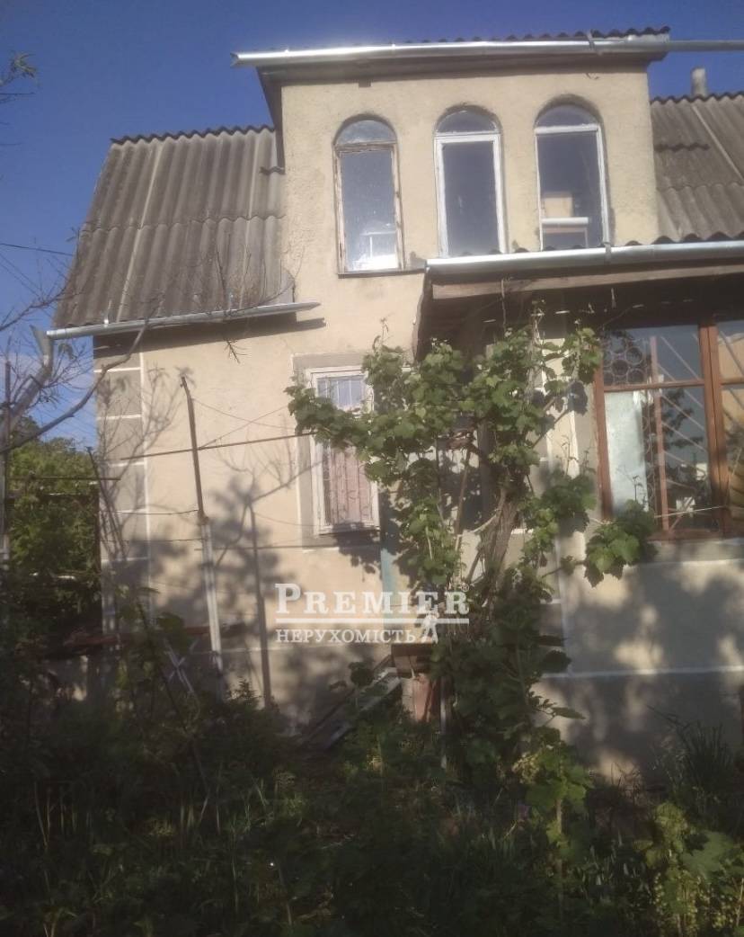 Продається дачний 2-поверховий мансардний будинок з цокольним гаражем на весь будинок, на ділянці 5 соток землі. Опалення пічне. На кухні плита із нагріванням від печі. Є криниця. Вода підведена до прилеглих ділянок. Є цегляна прибудова-веранда. Фундамент та цоколь із залізничних блоків. Стіни з червоної цегли товщиною 0,5 м. На другому поверсі 1 велика кімната, на першому-1 кімната, кухня та коридор. На ділянці багато хороших фруктових дерев. Спереду місце під стоянку авто. Поруч сосновий бір та лиман.