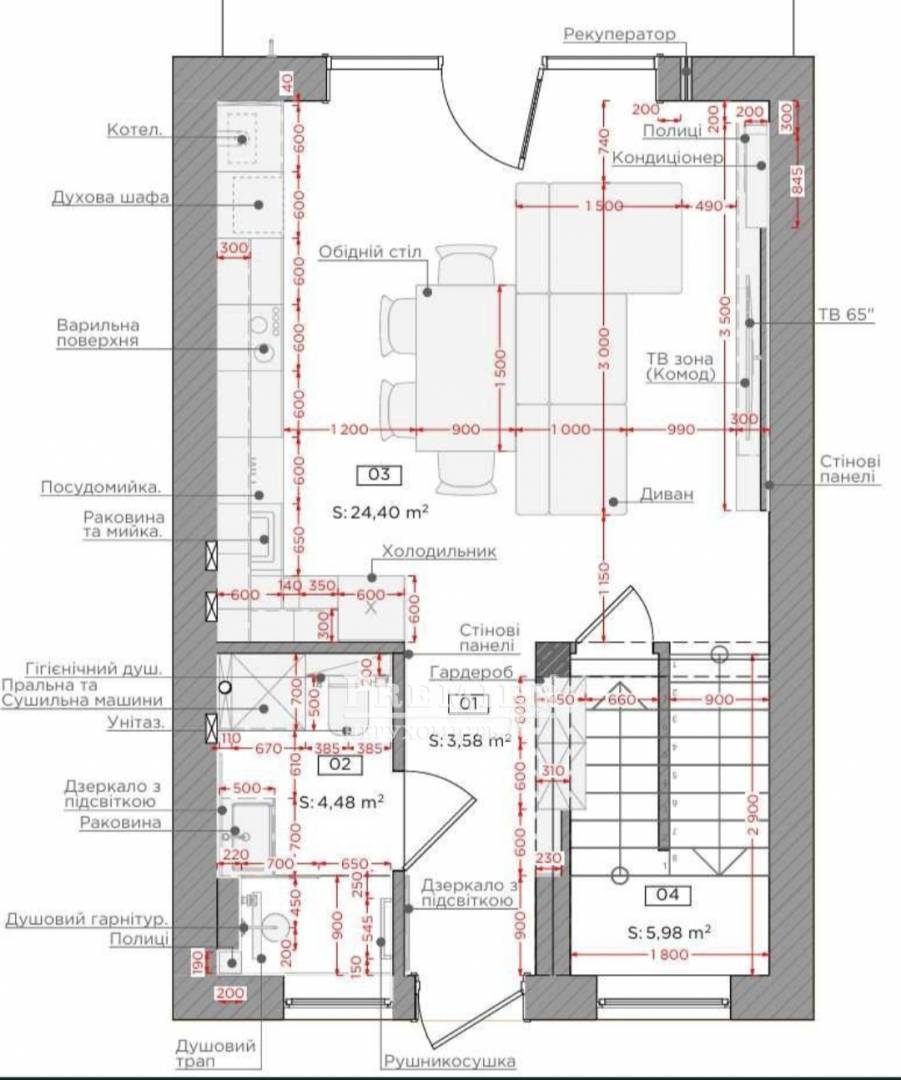 3 поверхи, 120 м², 2 паркомісця, власна барбекю-зона 20 м², висота стелі 3 м. Електрика, вода, газ, інтернет, каналізація – вже все в будинку.