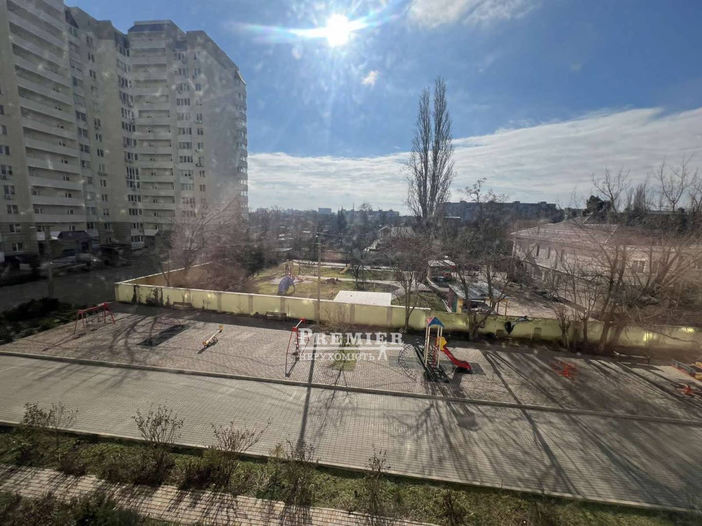 Навколо будинку великий круговий двір із закритою територією. Поруч розташований дитячий садок, за 5 хвилин ходьби — школа та кілька продуктових супермаркетів. У самому будинку є спортзал і салони краси. Біля будинку багато місць для безкоштовного паркування, а також дві закриті охоронювані стоянки.
