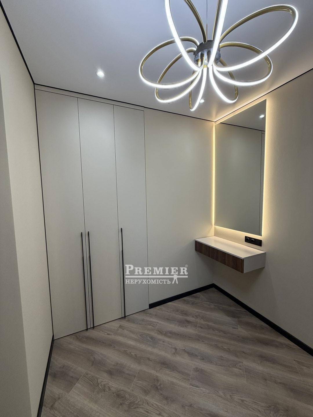 У квартирі виконаний сучасний красивий ремонт з використанням якісних матеріалів. Встановлена вбудована кухня, є всі необхідні меблі та техніка, включаючи кондиціонер та посудомийну машину. Житло повністю готове до комфортного проживання.