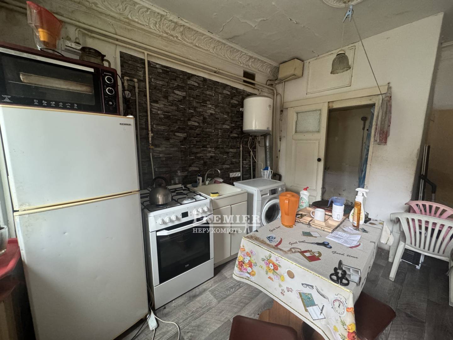Стан – житловий, можна заїхати та жити. При цьому об'єкт відмінно підходить під перепланування: легко реалізувати сучасний формат із просторою кухнею-вітальнею та окремою спальнею. Висота стель дозволяє облаштувати другий рівень, збільшивши корисний простір. Також є можливість зробити затишний палісадник – рідкісна перевага для центру міста.