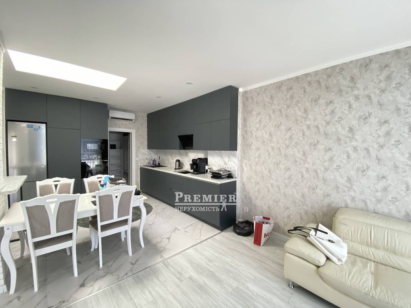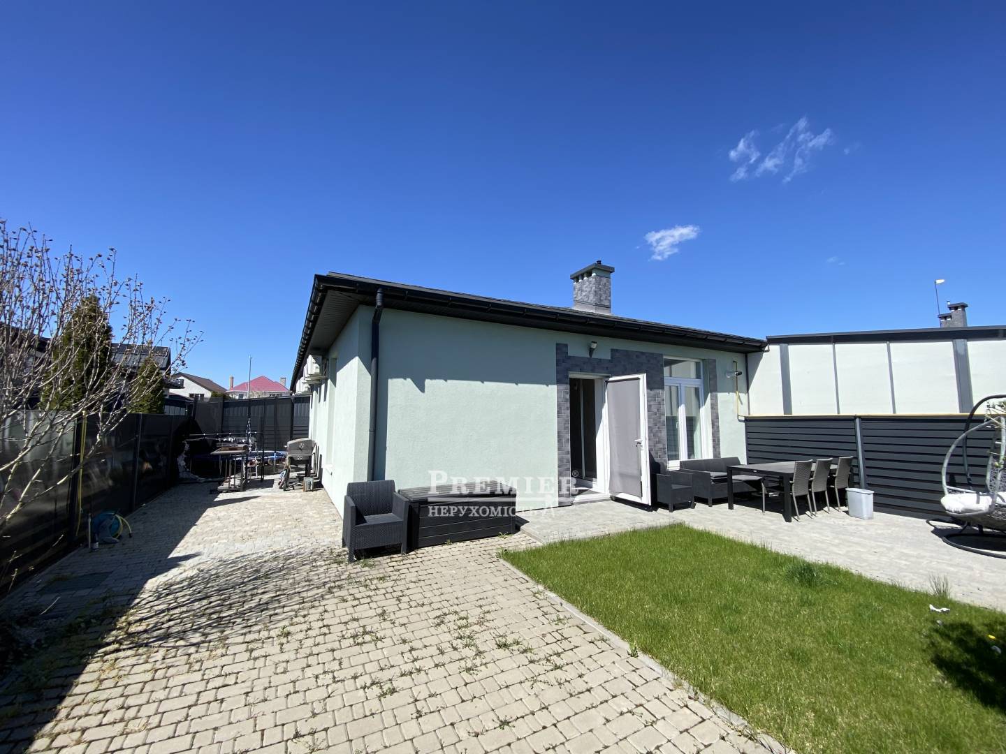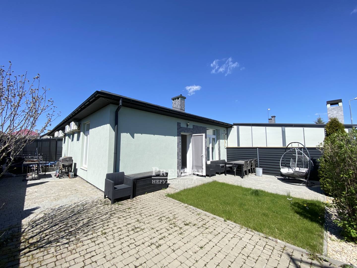 У продажу одноповерховий квадрокс Світлий Совіньйон. Загальна площа 74 м2, дві спальні, кухня вітальня, з/в, вбиральня, та додаткова комора на горищі. Будинок з ремонтом, залишається кухня з вбудованою технікою, так само частково залишається меблі по кімнатах. Земля – 1,9 сотки, з держактом. На ділянці зроблено виведення під басейн/джакузі. Комунікація світло, вода, газ. Паркомісце для автомобіля. Продаж через переуступку.