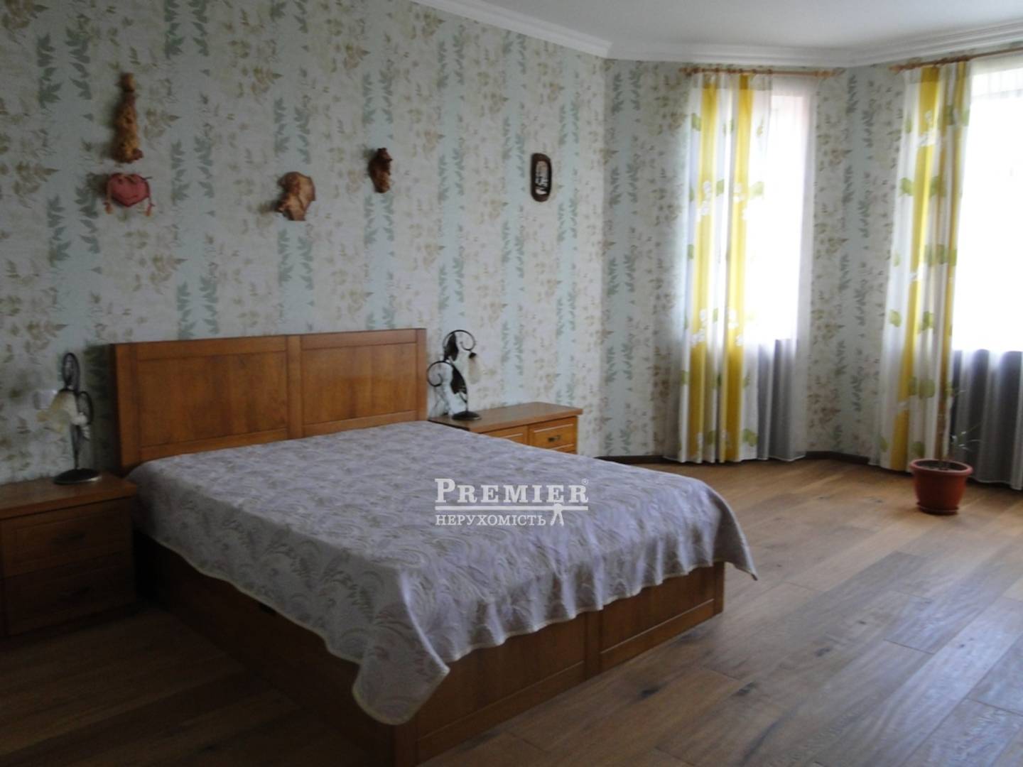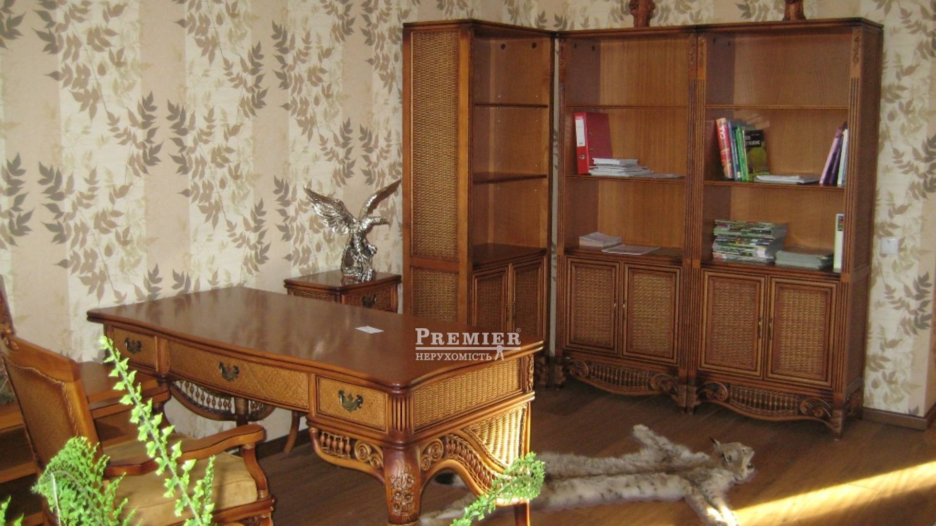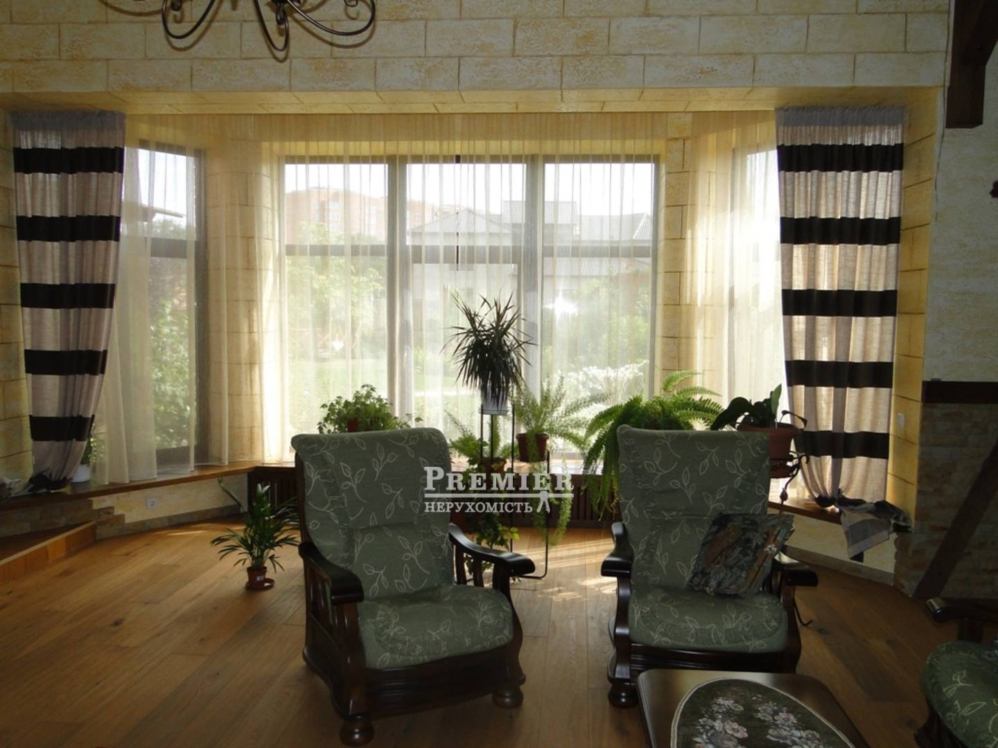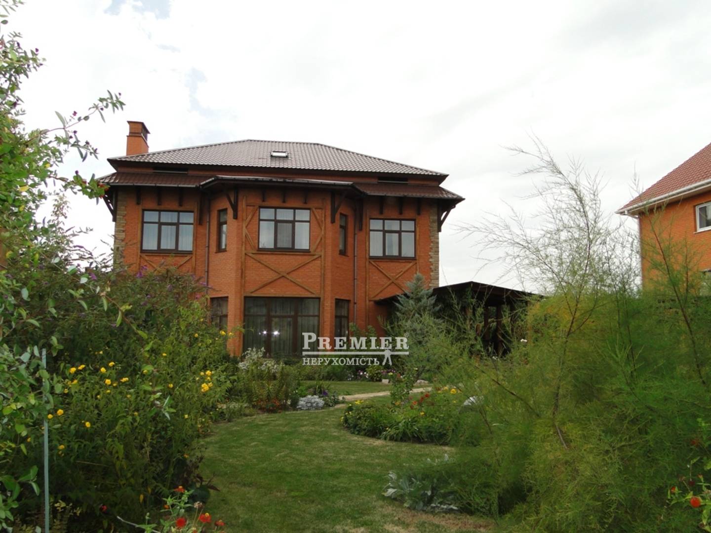 2 х поверховий будинок 365 кв.м. з дорогим, сучасним ремонтом. 7 кімнат всі роздільні. 2 великих холу на першому і другому поверхах. Кухня - їдальня 28 кв.м. АОГВ, вбудована техніка. У холі на першому поверсі є діючий камін. Меблі з натурального дуба і ротанга. Пол - паркетна дошка з різних порід дерева, на стінах шпалери, венеціанка. Перила на сходах - ковка ручної роботи. Всі кімнати мебльовані. Матеріал споруди - черепашник. Облицювання - червона цегла. У дворі ландшафтний дизайн, альтанка, садові меблі. Невеликий водоспад з басейном. Ділянка засаджена хвойними рослинами. Кілька фруктових дерев.