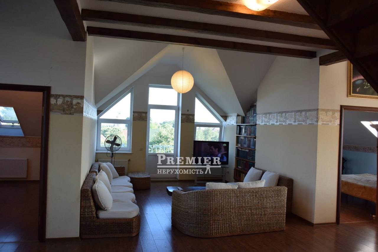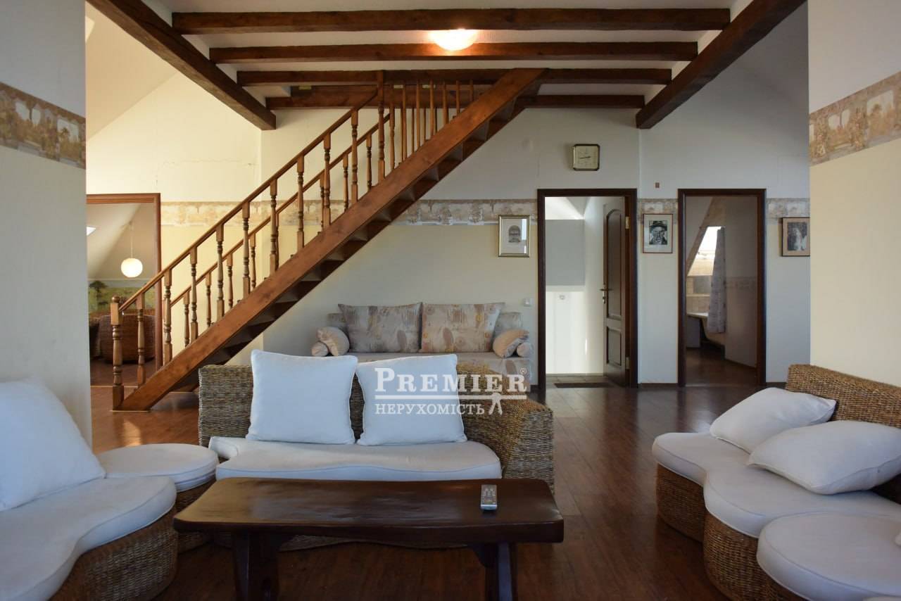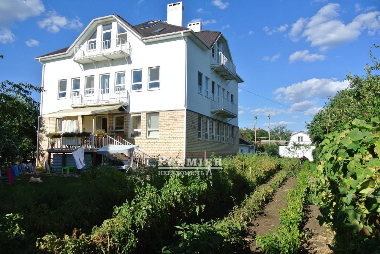 Продам будинок у Фонтанці на морській стороні, збудований у 2007 році на ділянці 11 соток землі. Будинок двоповерховий з цокольним поверхом та дворівневою мансардою (всього чотири поверхи), квадратний у плані. Загальна площа за техпаспортом 511 кв. Перший, другий та мансардний поверхи 3 окремі квартири з окремими входами з внутрішніх сходів – кожна площею 140 кв.м. з кухнею, санвузлом та кондиціонером. На першому поверсі камін, тераса, на другому та мансардному поверхах по три балкони. З мансардного поверху вид на море та на Одесу. Є цегляна ліфтова шахта, яка розрахована на можливість влаштування ліфта. Два в'їзди на ділянку з металевими воротами та хвіртками, кам'яний паркан. Потужність тротуарною плиткою. Город на краплинному зрошенні, 450 кв. Газон 200 кв. з автоматичним поливом, підземна ємність для води на 7 куб.м., автономне водопостачання (гідрофор) за відсутності води у водопроводі. Вигрібна яма глибиною 6 м. Кам'яний теплий гараж на чотири машини, широкі підйомні ворота з пультами дистанційного керування (2 шт.). Над гаражем мансарда, утеплена Rockwool завтовшки 200 мм. Електропостачання – трифазний струм. У гаражі бензиновий генератор (4,5 кВт, з правильною синусоїдою) автоматично включається при відключенні електропостачання. Забезпечує безперебійну роботу газового опалювального казана та інших електроприладів. Сучасна дахова геліосистема на автоматиці, залита незамерзаюча рідина забезпечує гаряче водопостачання будинку. У цокольному поверсі газовий котел опалення та бойлер, що підігрівається влітку геліосистемою, взимку газом. У санвузлах фінські унітази IDO, крани GROНE із душем-біде скандинавського типу. Стіни цоколя та першого поверху - з ефективної керамічної лицьової цеглини (510 мм) під розшивку, у тому числі в інтер'єрах. Стіни другого та мансардного поверхів камінь-черепашник товщиною 400 мм із утепленням пінопластом 50 мм. Мансарда утеплена Rockwool завтовшки 200 мм. Покрівля металочерепиця ТПК оцинкована з максимально міцним матовим покриттям
