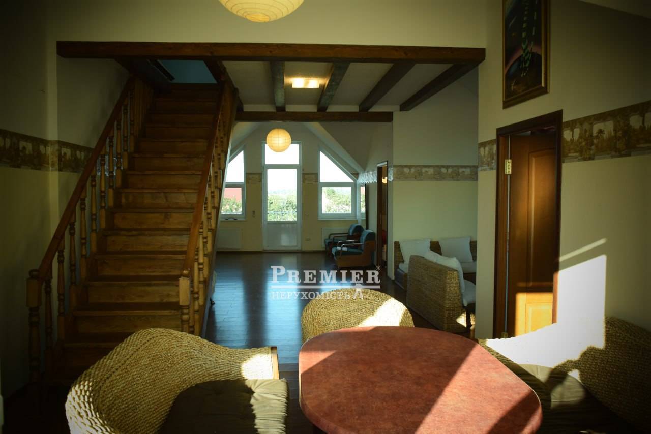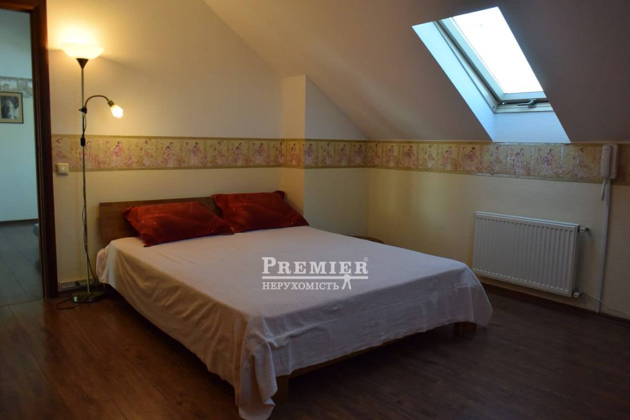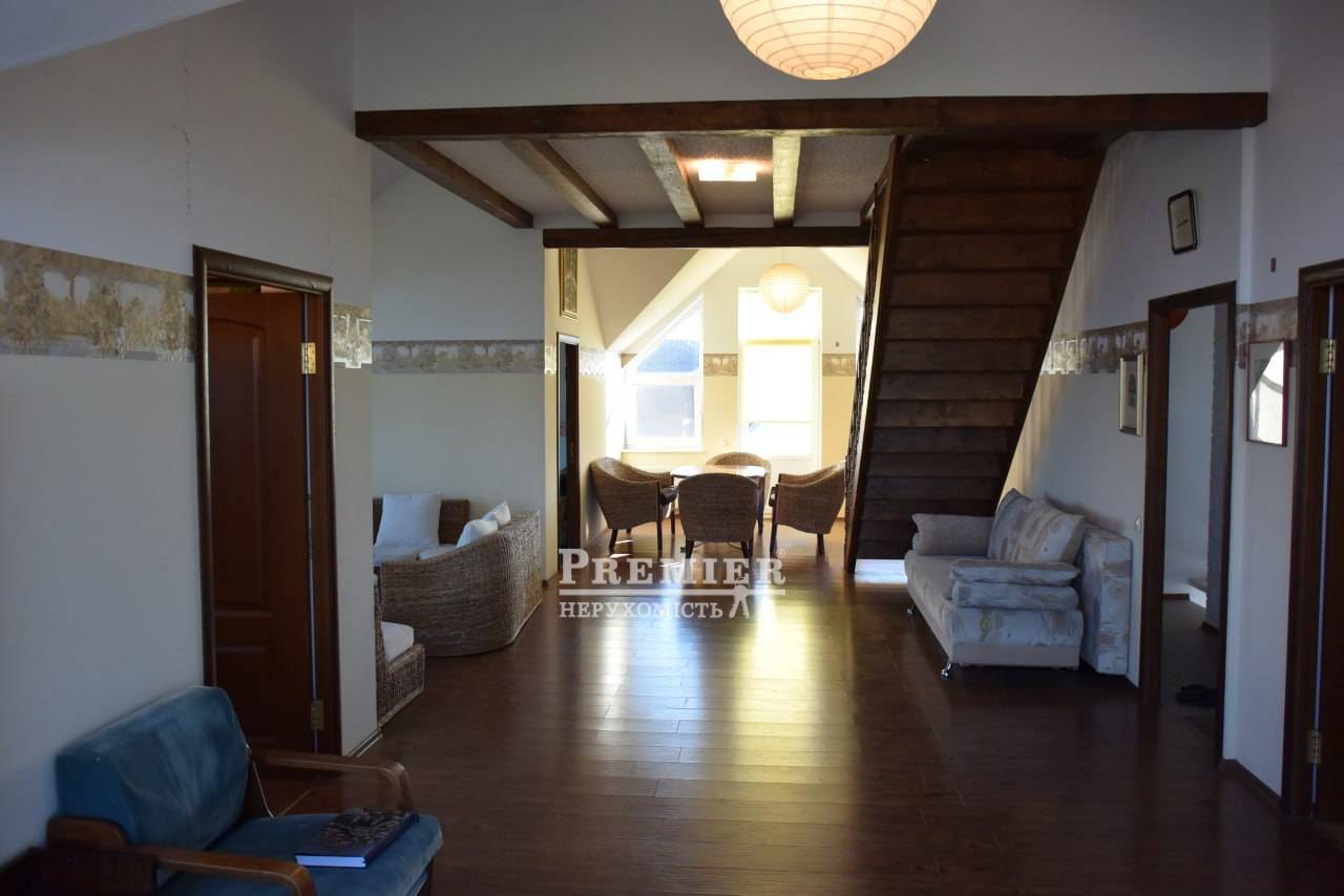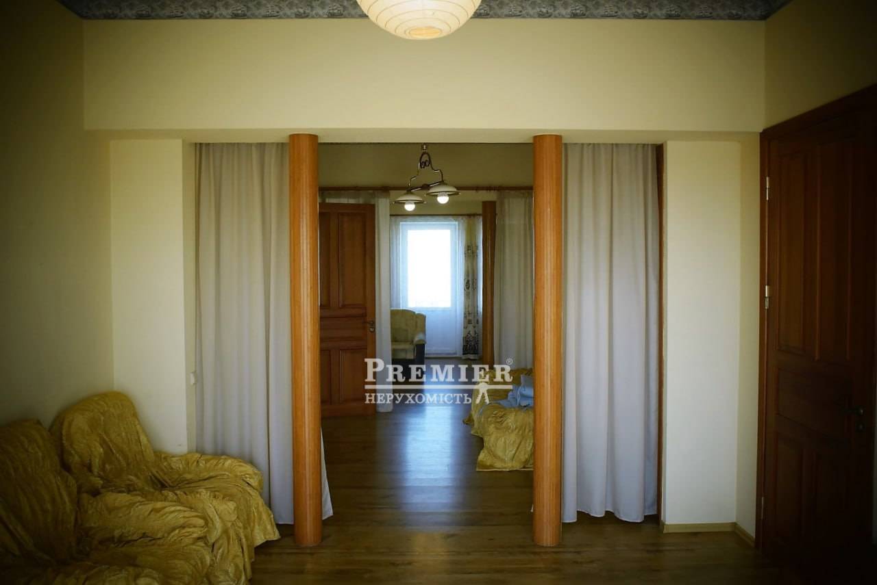 Продам будинок у Фонтанці на морській стороні, збудований у 2007 році на ділянці 11 соток землі. Будинок двоповерховий з цокольним поверхом та дворівневою мансардою (всього чотири поверхи), квадратний у плані. Загальна площа за техпаспортом 511 кв. Перший, другий та мансардний поверхи 3 окремі квартири з окремими входами з внутрішніх сходів – кожна площею 140 кв.м. з кухнею, санвузлом та кондиціонером. На першому поверсі камін, тераса, на другому та мансардному поверхах по три балкони. З мансардного поверху вид на море та на Одесу. Є цегляна ліфтова шахта, яка розрахована на можливість влаштування ліфта. Два в'їзди на ділянку з металевими воротами та хвіртками, кам'яний паркан. Потужність тротуарною плиткою. Город на краплинному зрошенні, 450 кв. Газон 200 кв. з автоматичним поливом, підземна ємність для води на 7 куб.м., автономне водопостачання (гідрофор) за відсутності води у водопроводі. Вигрібна яма глибиною 6 м. Кам'яний теплий гараж на чотири машини, широкі підйомні ворота з пультами дистанційного керування (2 шт.). Над гаражем мансарда, утеплена Rockwool завтовшки 200 мм. Електропостачання – трифазний струм. У гаражі бензиновий генератор (4,5 кВт, з правильною синусоїдою) автоматично включається при відключенні електропостачання. Забезпечує безперебійну роботу газового опалювального казана та інших електроприладів. Сучасна дахова геліосистема на автоматиці, залита незамерзаюча рідина забезпечує гаряче водопостачання будинку. У цокольному поверсі газовий котел опалення та бойлер, що підігрівається влітку геліосистемою, взимку газом. У санвузлах фінські унітази IDO, крани GROНE із душем-біде скандинавського типу. Стіни цоколя та першого поверху - з ефективної керамічної лицьової цеглини (510 мм) під розшивку, у тому числі в інтер'єрах. Стіни другого та мансардного поверхів камінь-черепашник товщиною 400 мм із утепленням пінопластом 50 мм. Мансарда утеплена Rockwool завтовшки 200 мм. Покрівля металочерепиця ТПК оцинкована з максимально міцним матовим покриттям