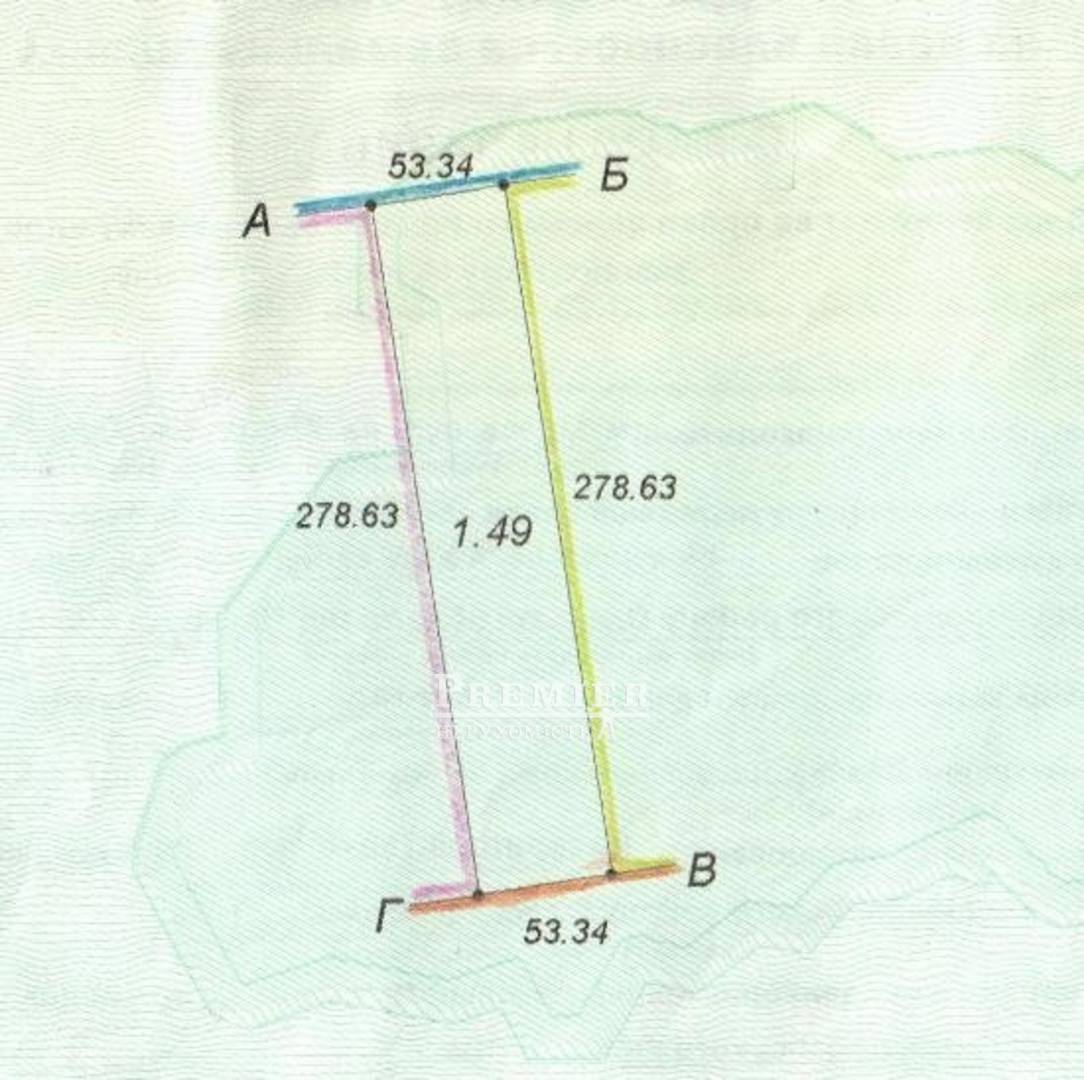 Продається ділянка 1,49 ГА, фасад 53 * 279, другий від дороги, світло 150 метрів, вода, каналізація 300 метрів.