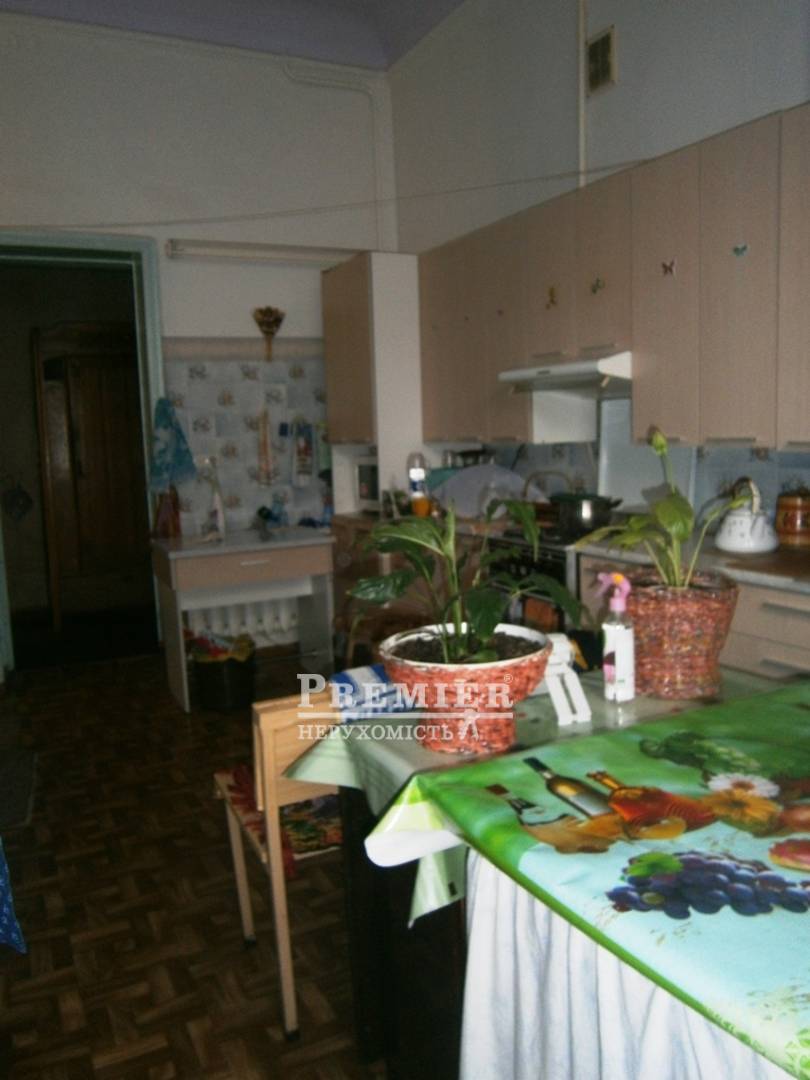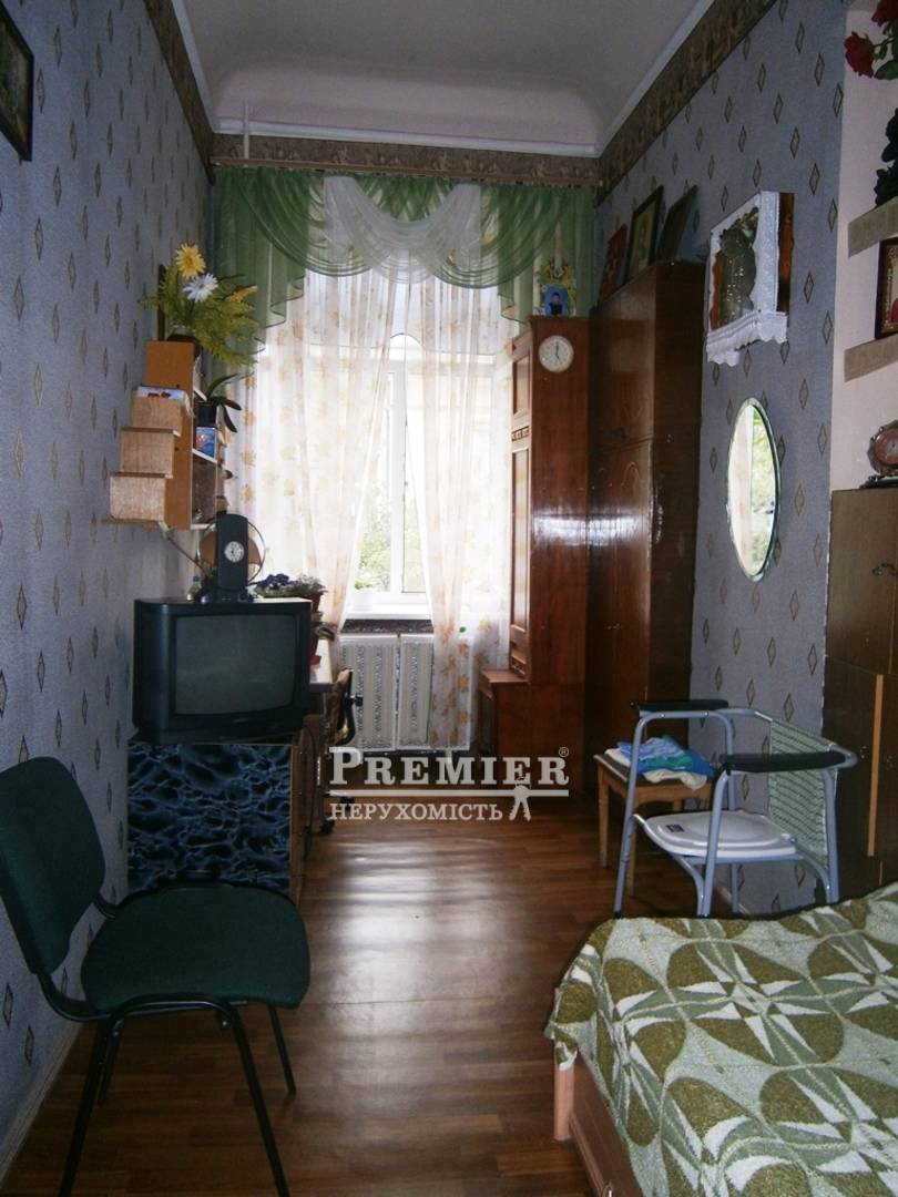 П'ятикімнатна квартира в хорошому міцному будинку в центрі міста. Чиста парадна з мармуровими сходами. Стан квартири - житловий. На підлозі в кімнатах дубовий паркет, в коридорах - лінолеум, в санвузлі - плитка. Є душ і ванна, санвузол роздільний. На стінах шпалери. Є другий вхід в квартиру. Продається разом з коміркою у дворику (20 кв.м.)