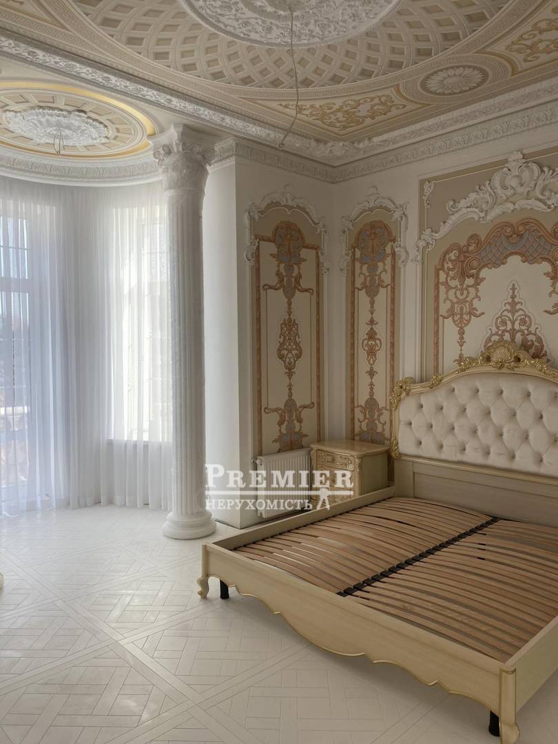 Будинок 700 кв.м., ділянка 8 соток, 3 поверхи, 2 басейни (будинок і двір). Кількість спалень 7-10 за бажанням клієнта, 4 санвузли, велика кухня-студія і вітальня. До моря 500 кв.м., підземний гараж на одне авто. Ремонт виконаний на 30%.