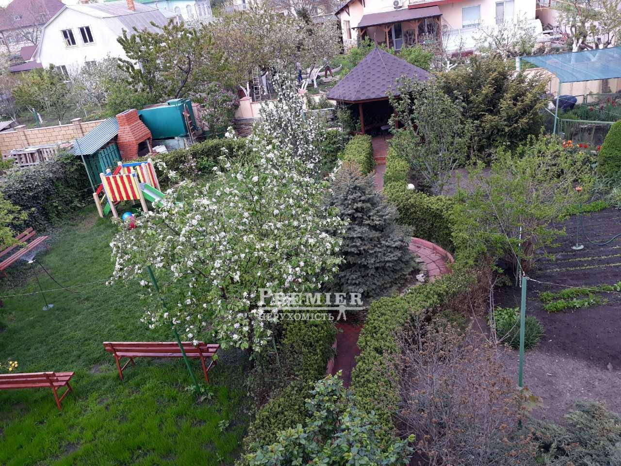 Продам відмінний будинок - 2 поверхи і мансарда! Загальна площа 478 кв / м. Ділянка 10 соток. Дом 2011 года постройки, в 10 хвилинах їзди до ТЦ Рів'єра, 15 хвилин пішого ходу до морю.Ідеальний варіант під приватний готель, дитячий сад, школу розвитку. Будинок в чотирьох рівнях. Напівпідвальне приміщення: котельня, пральня, великий спортивний зал 47 кв.м .; Перший поверх: гараж під два авто з автоматичними воротами, великий хол з мармуровим каміном, дві кімнати, парна, спальня, кухня-їдальня, чинна українська піч; Другий поверх три з смальни з мармуровими камінами, дві кімнати під офіси, великий санвузол, букова дерев'яні сходи між поверхами; Мансарда: кімната відпочинку 45 кв / м, кабінет, опалювальна піч. Прибудинкова територія викладена плиткою 250 кв / м. Чудовий сад, альтанка і ставок в якому плавають черепахи, ростуть лілії. На території встановлено критий навіс для автотранспорту. Побудовано підземні зливовідвід, встановлена система зовнішнього поливу всієї ділянки. Побудований каналізаційний септик 40 кубів. Будинок побудований з високоякісних матеріалів: стіни з черепашнику і фанеровані силікатною цеглою 60 см., Дах з німецької металочерепиці, електрику 380 вольт, каналізація, водопостачання гідрофор, бак для води, незалежні бойлери. Опалення 3 газових котла Viessman. Дубові дерев'яні двері, підлоги керамічна плитка, ламінат. кабельне ТБ, інтернет. Є резервний бак на 2 куб / м води, а так само бензиновий генератор HONDA. Висота стель 3,1 метра. Будинок оснащений охороною та пожежною сигналізацією, відеоспостереженням