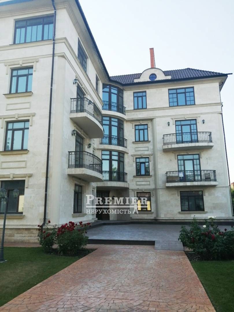 Продається квартира в новому зданому будинку. Загальна площа 168 м.кв., вільне планування. У квартирі встановлений АОГВ, батареї, прилади обліку, металопластикові вікна. У будинку є ліфт. Вікна виходять на приватний сектор. Будинок знаходиться на території, що охороняється з підземним паркінгом, зеленою зоною, дитячий майданчик. До моря 15 хв. пішки.