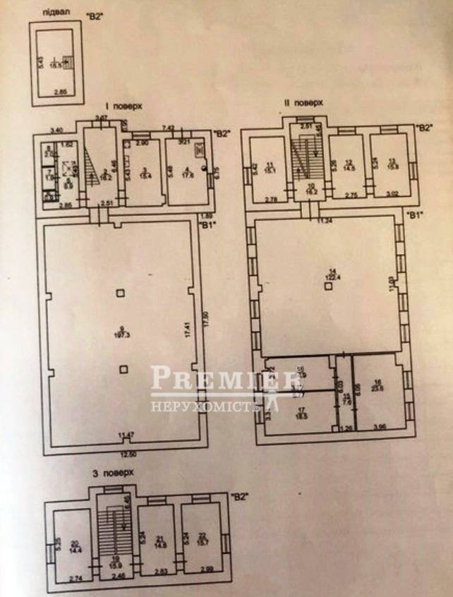 Продається 3-поверхова будівля. 1 поверх - 261 кв.м., 2 поверх - 240 кв.м., 3 поверх - 60 кв.м, підвал - 14,5 кв.м На першому поверсі своя котельня, складське приміщення 197 кв.м., кухня і санвузол з душем. На другому поверсі 6 кабінетів окремих родовищ і одне приміщення прохідне 122 кв.м. з 8-ю вікнами. На третьому поверсі 3 кабінети. Приміщення в чистому стані, пластикові вікна, нові радіатори. Своя серверна. Закрита територія, що охороняється, паркомісця під будівлею.