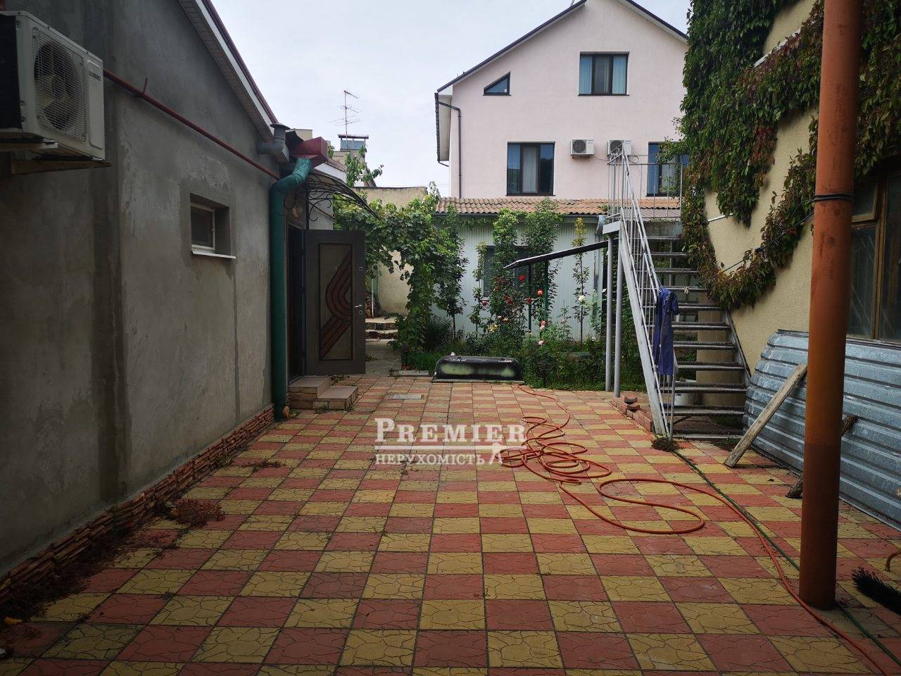 Пропонується до продажу будинок в центрі міста, на ділянці 5,2 сотки землі. У будинку дві спальні і велика кухня студія з виходом на терасу, санвузол і велика гардеробна. Ремонт, меблі, техніка. На ділянці є гостьовий будиночок з сауною, великий гараж на 4 машини. Над гаражем збудований другий поверх (дві спальні, кухня і санвузол, камін, тепла підлога - все під чистову обробку). У дворі є ставок для риб і фонтанчик у тераси. Газ, світло, вода, каналізація міські. Відеоспостереження. Посаджений виноградник хороших сортів, плодові дерева і кущі красивих троянд. Дуже хороша транспортна розв'язка.