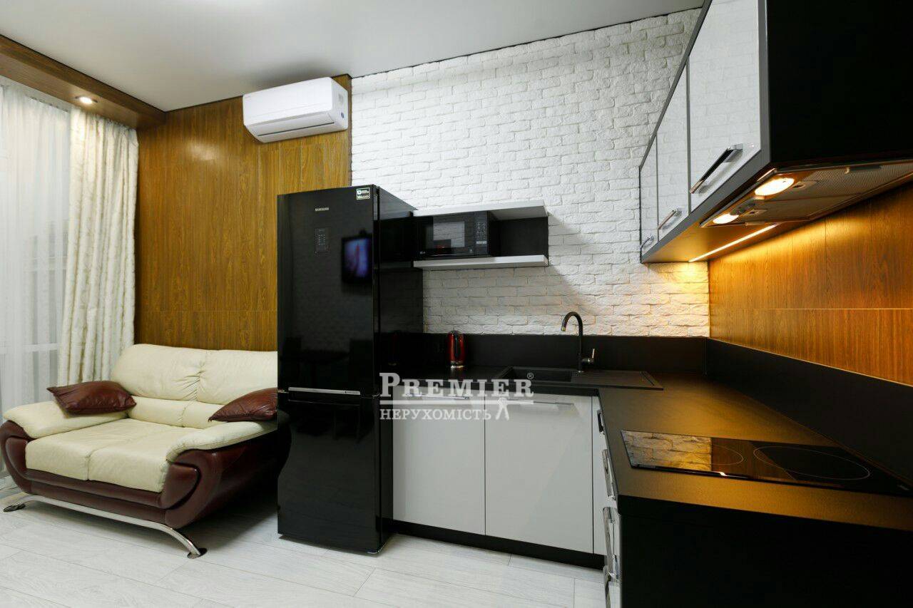 У продажу 1-но кімнатна квартира в новому сданом будинку на Французькому бульварі загальною площею 46 кв.м. Виконаний якісний дизайнерський ремонт, кондиціонер, сучасні меблі. Закрита територія, що охороняється з відеоспостереженням, облагороджена територія з ландшафтним дизайном. Добре розвинена інфраструктура.