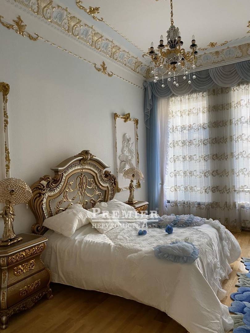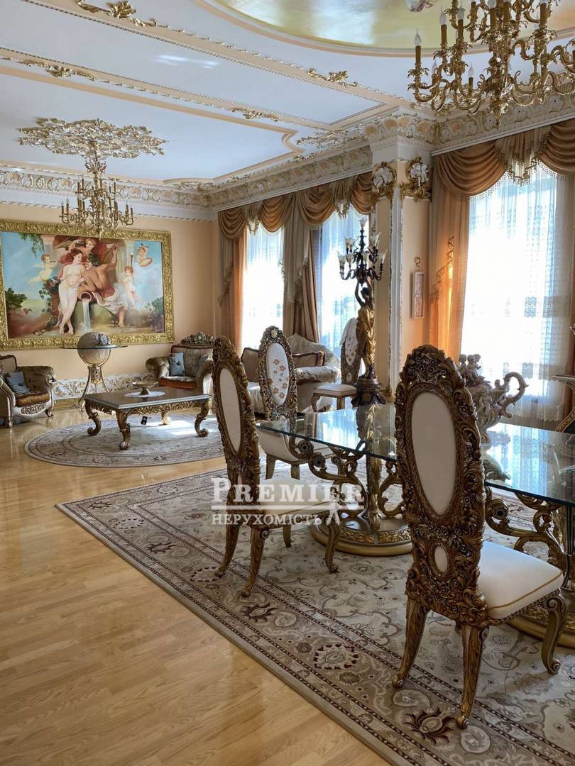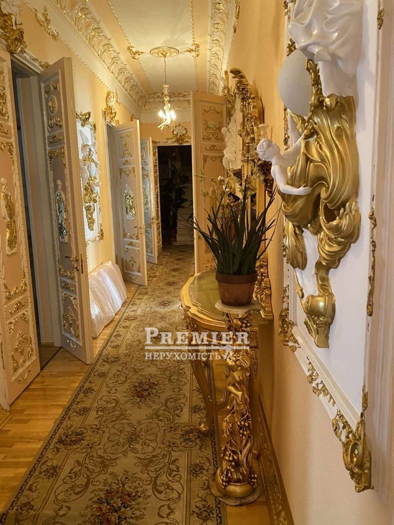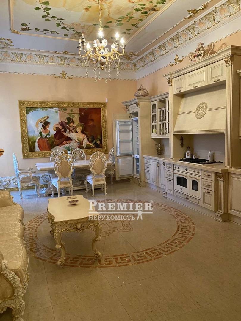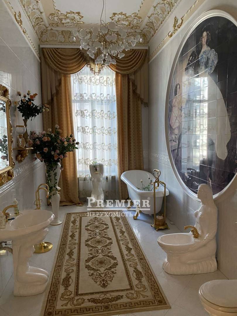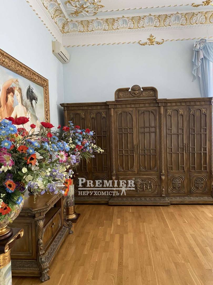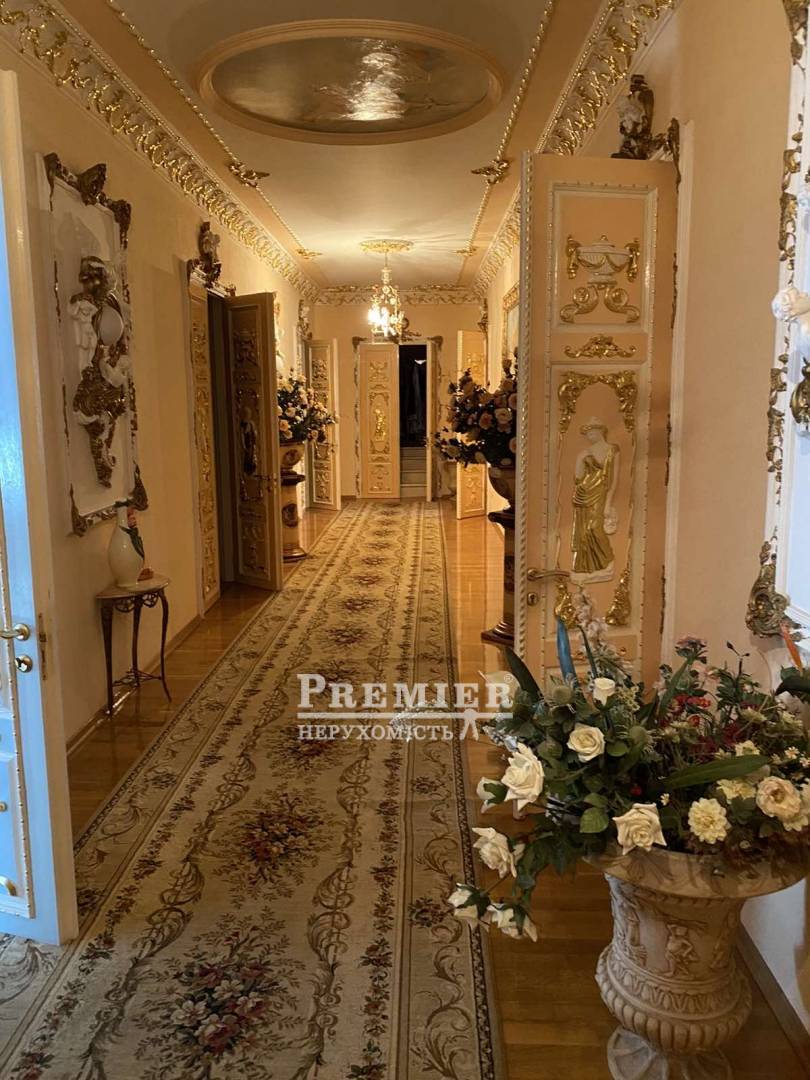 Продається шикарна дворівнева квартира в самому серці міста Одеса! Квартира загальною площа 540 кв м, розташована в міцному красивому царському будинку, висота стель 3,45 м. У квартирі 9 кімнат-3 спальні кімнати, кабінет, їдальня, зал, вітальня з каміном, 3 ванні кімнати, великий просторий коридор, баня, сауна є балкони. Квартира продається з усім її наповненням. Меблі - натуральне дерево під замовлення, на підлозі паркет, лестніца- мармур, дуже дорогий сан фаянс. До Дерибасівській пів хвилини. Про показах домовлятися заздалегідь.