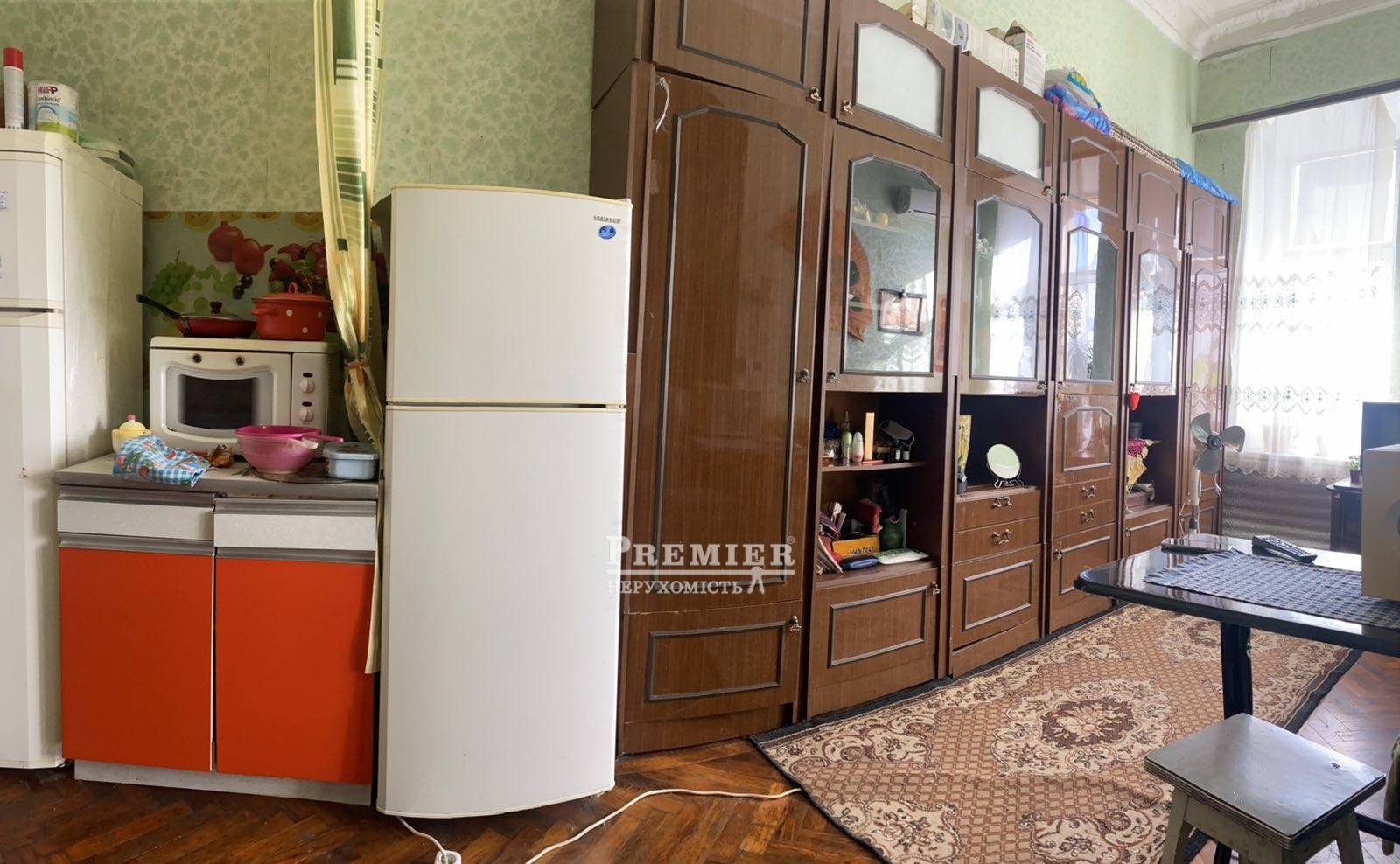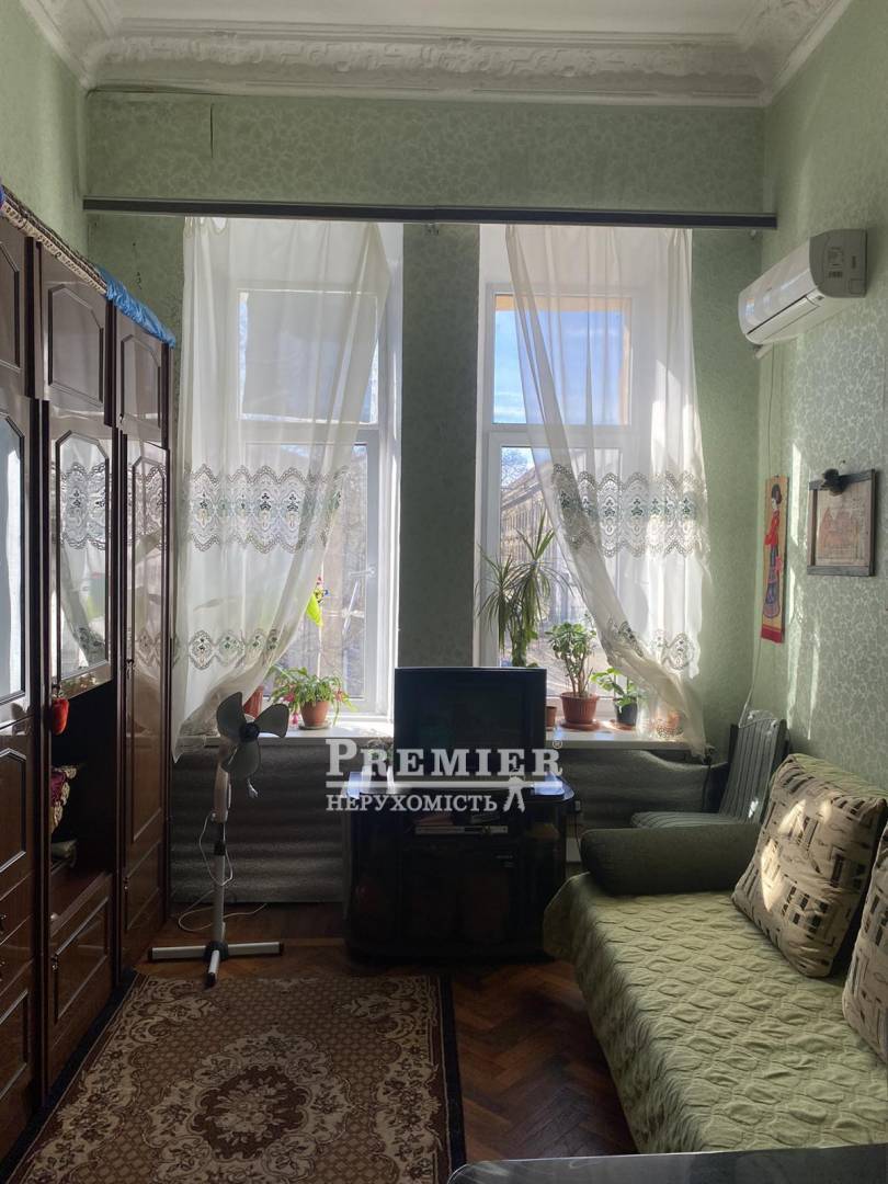 Комуна в історичній частині Одеси. Хороший житловий стан, металопластикові вікна, підлога - паркет в хорошому стані. Є кондиціонер. З вікон вид на Кірху. Закритий двір, є місце під машину. На першому поверсі є супермаркет. До центру розваг Одеси 10 хв пішки.