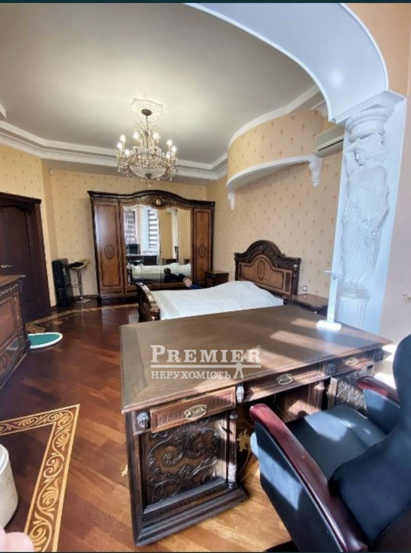 Продається шикарний будинок знаходиться на території закритого котеджного селища на вул. Педагогічної, Аркадія, з охороною і відеоспостереженням. Ділянка 2,5 сотки (8м * 30м). Площа 250м2, гараж на 2 машини і одне місце перед гаражем. Фасад будинку з боку двору оновлений дорогим сайдингом, дах-металочерепиця, вікна євробрус, труби мідні. Будинок 3-поверховий і підвал. Є дворик для відпочинку. Вдале планування вміщує в себе величезний зал 50 м2, кухню -їдальня 27 м2, 4 спальні, 4 санвузли, кабінет, пральню, інфрачервону сауну, кілька терас. Ремонт в розкішному класичному стилі з ліпниною ручної роботи на стелях і стінах. Висота стель 3,5 м. Дубові сходи, балясини з сусальним золотом. Художній паркет, дерев'яні двері, декоративна штукатурка, італійські меблі, і люстри, оригінальна плитка Versace. Будинок сонячними панелями