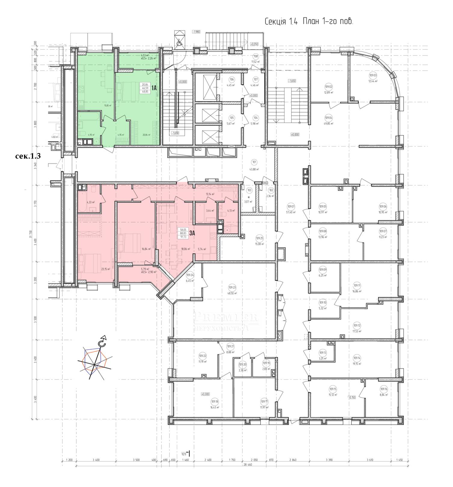 Трехкомнатные квартиры | от 91,5 м² | 820 $ |