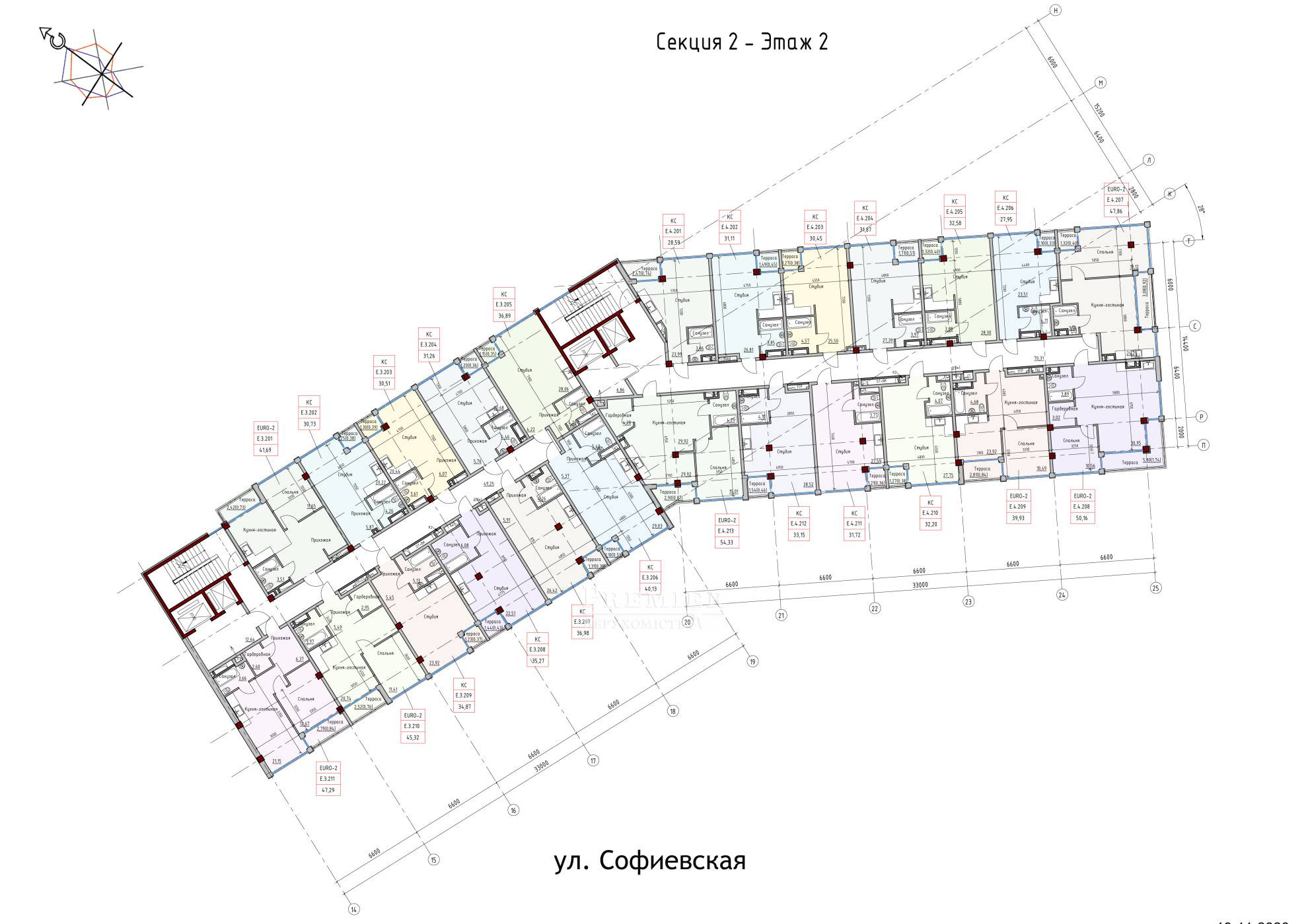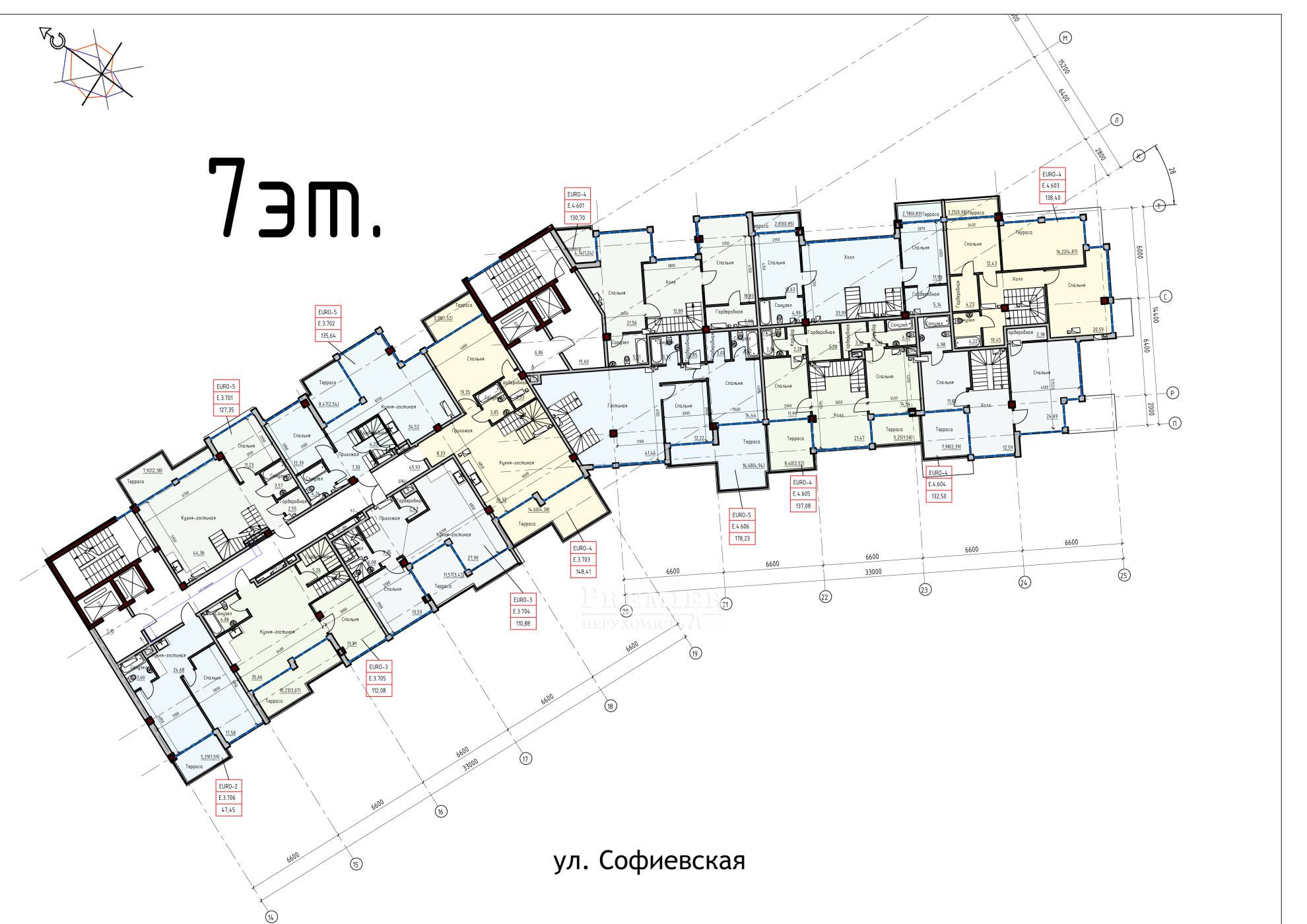 Комплекс складається з чотирьох секцій, поверховістю 9-25. Монолітно-каркасна конструкція базується на міцному фундаменті, представленому монолітним залізобетонним ростверком на пальовій підставі. Стіни зводяться з газобетону і керамоблока. Крім того, використовується комбінована фасадна обробка і фасадна облицювальна цегла. Утеплення здійснюється за рахунок застосування базальтових плит (50 мм). У комплексі встановлюються швидкісні, безшумні ліфти. Також облаштовуємо місткий підземний паркінг на 600 місць.