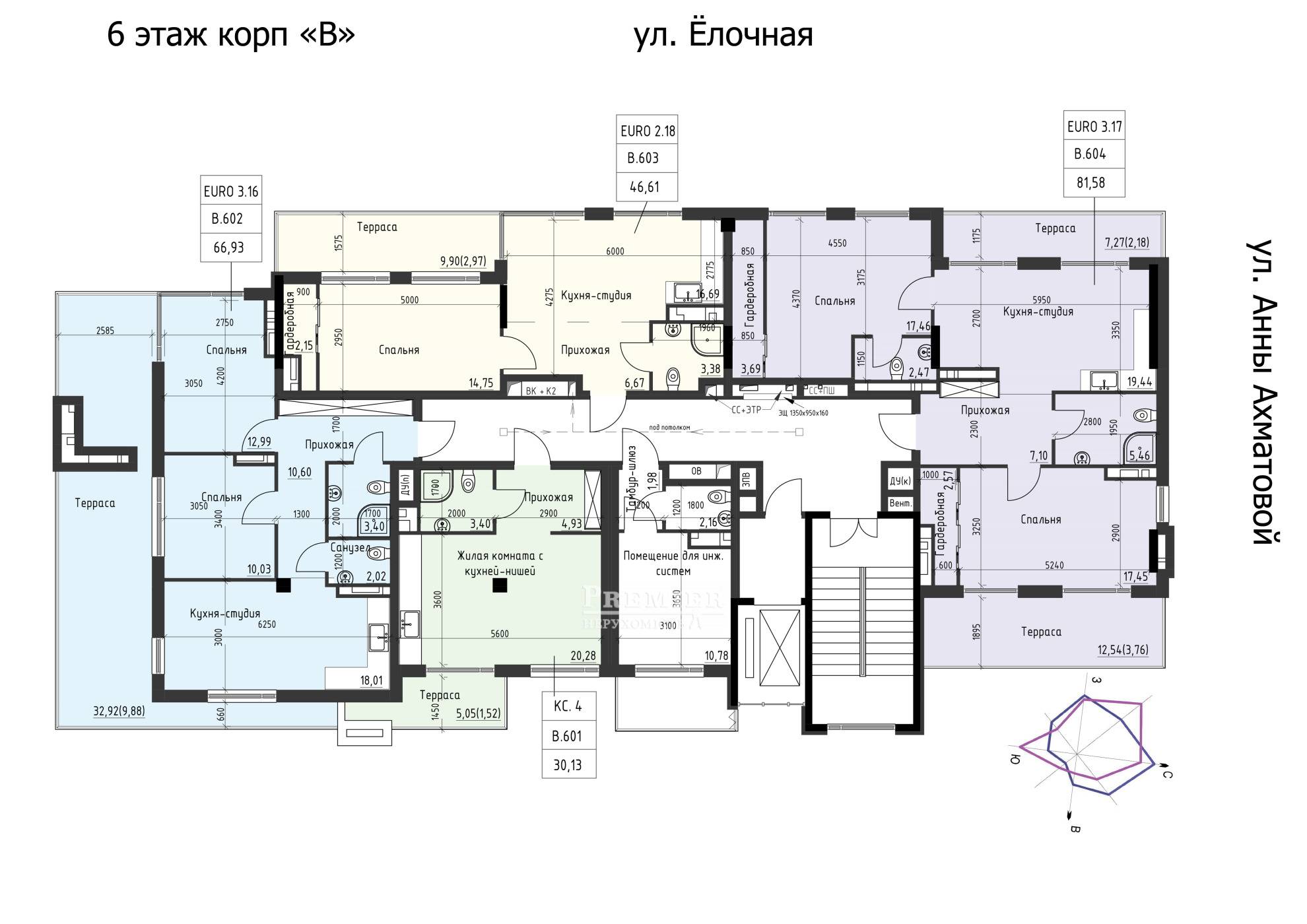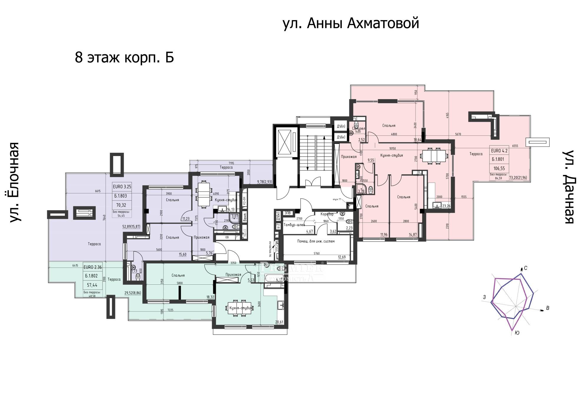 Що стосується квартир, то є варіанти з однією, двома і трьома кімнатами. Пропонується персональна адаптація планування та стилю ремонту. Мінімальна площа становить 26 кв. метра, а максимальна - 107 кв. метрів. Система опалення представлена дахової газової котельні та опалювальними приладами. У кожній квартирі монтуються міцні металопластикові вікна (5-камерний профіль) з енергозберігаючими склопакетами (2-камерний дзеркальний), а також броньовані вхідні двері, обшиті з двох сторін відповідно до дизайн-проектом.Висота стель - метра.