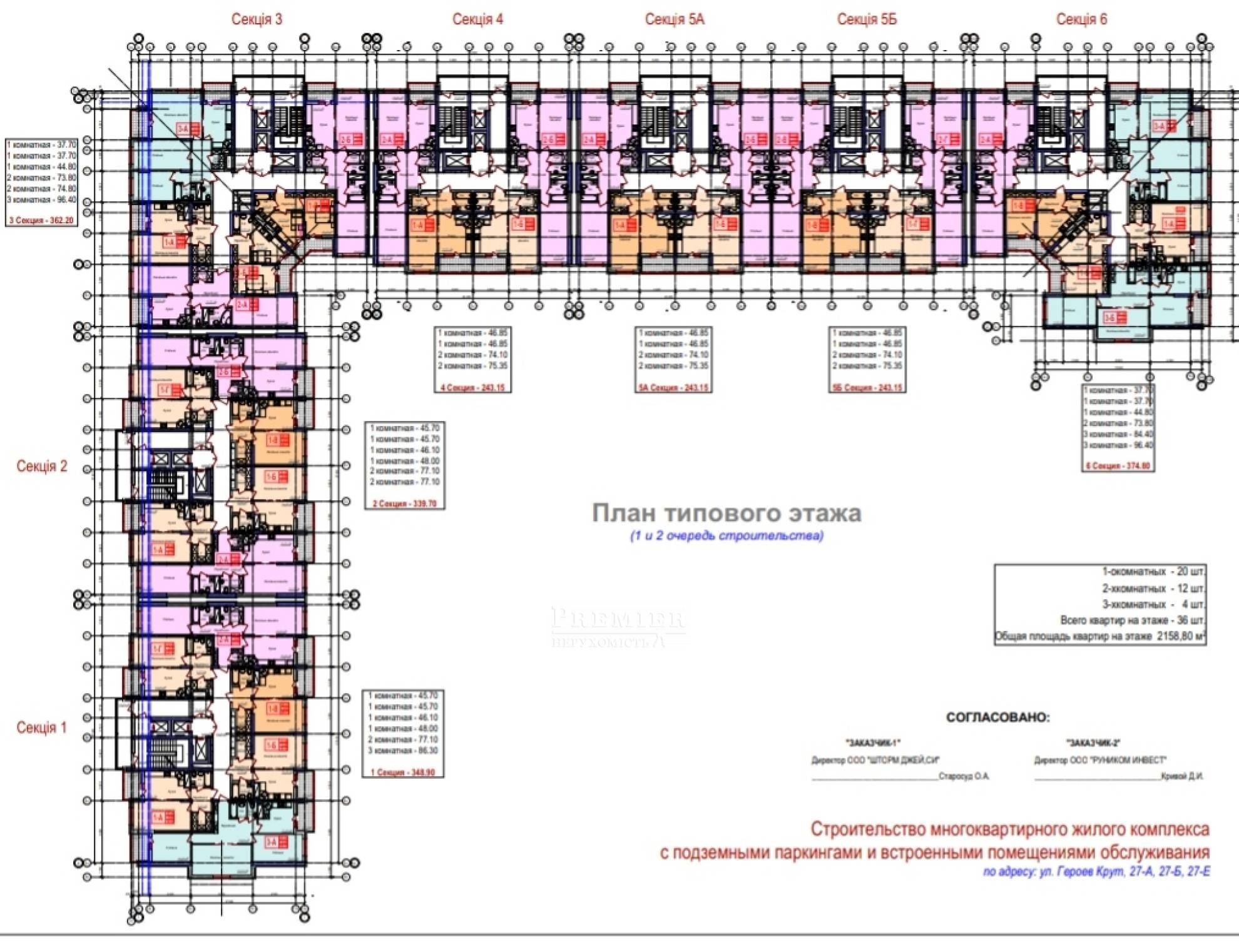 Комплекс состоит из 6 секций и 24 этажей. Монолитно-каркасная конструкция базируется на прочном свайном фундаменте, а стены выполняются из газобетона. В качестве утеплителя используется пенополистерол, а фасад штукатурится и покрывается специальными красками по современной технологии. В ЖК монтируются скоростные бесшумные лифты (пассажирский и грузо-пассажирский) ведущего производителя. Кроме того, обустраивается вместительный, одноуровневый подземный паркинг.