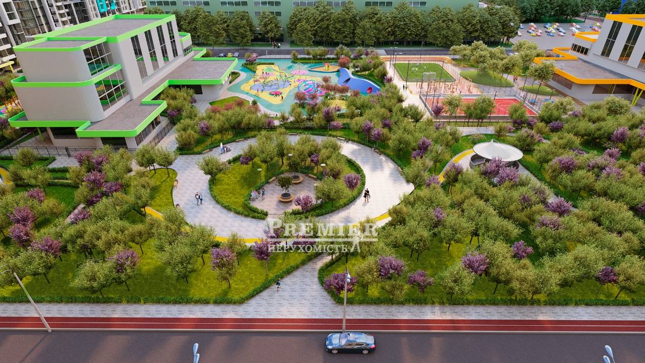 Придомовая территория будет оборудована детскими площадками, зонами отдыха, зелеными насаждениями, спортплощадками.